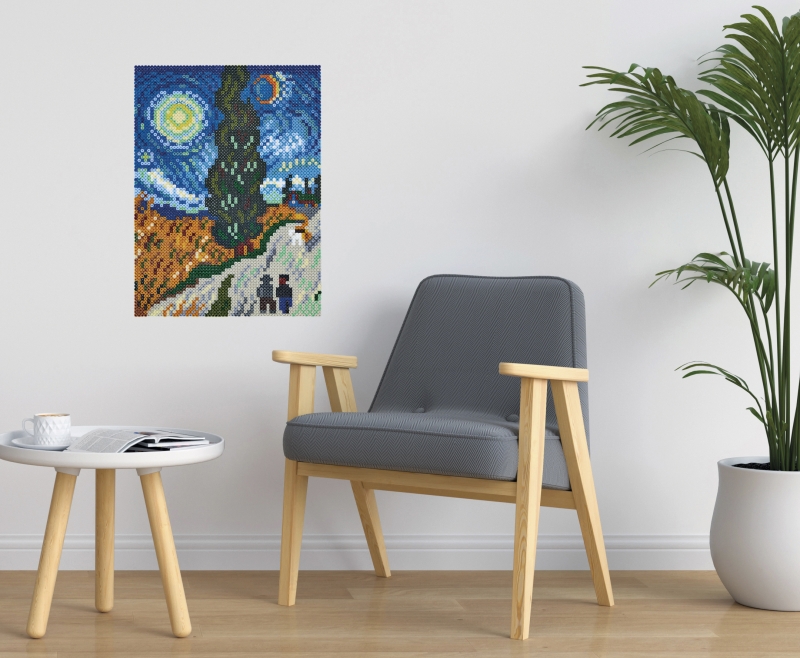 MIDI: átmérő 5 mm Tartalma: - 10000 darabos, vegyes színű MIDI vasalható gyöngy készlet - 6 db MIDI összekapcsolható négyzet alaplap - 1 db színes összerakási segédlet - 1 db vasalópapír Az összerakási segédletet a híres holland posztimpresszionista festő, Vincent van Gogh munkái ihlették. A doboz mérete: 18,5x27x7 cm Ez a készlet inkább a felnőttek számára kínál izgalmas szórakozást.