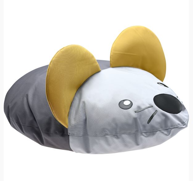 A kedves egér formájú padlópárna kimondottan gyerekeknek lett tervezve. Az egérke sötét- és világosszürke elemekből áll, nagy okkersárga fülekkel és farkincával. Bájos arca fekete színű részletekből lett kialakítva, orrocskával, bajusszal és kicsi szemekkel. A füleket lehet fektetett, illetve állított pozícióba is helyezni. A párna puha habszivacsból és erős, külső textil borításból áll. A huzat lehúzható és mosható. A mérete: 70x80 cm.