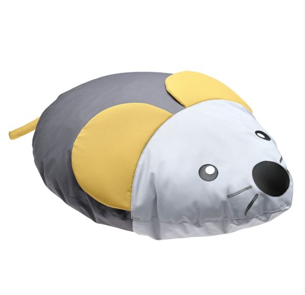 Az egér formájú, habszivaccsal töltött, textil borítású padlópárna gyerekeknek készült, akár óvodai, akár otthoni használatra.