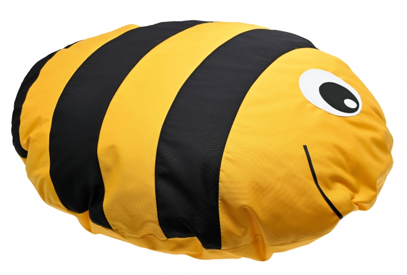 A méhecske formájú padlópárna többféle élénk színből áll össze. Belső töltete habszivacs, külső huzata textil. A huzat lehúzható és mosható.