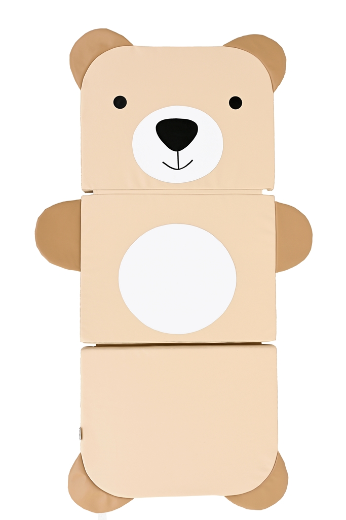 A 3 elem mérete egyben: 80x180x5 cm Az összehajtható matrac használható kis kanapénak, de akár szivacsos szőnyegnek is. A maci teste krémes barna színű, fehér arccal és pocakkal. Apró végtagjai és fülei sötétebb barnák. A matrac bevonata műbőr, belseje habszivacs. 6 hónapos korú gyermekek számára CE minősítéssel ellátva!