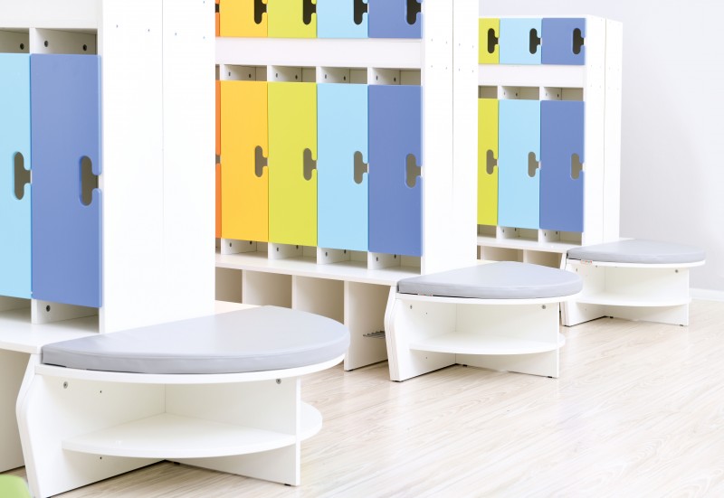 A Bambi termékcsaládba tartozó félkör alakú pad kényelmes, puha matraccal lett ellátva. Az ülőfelület alatt egy félkör alakú polc található, középen ketté osztva. A pad teste fehér, a matrac pedig szürke színű. Laminált bútorlapból készült, így egy strapabíró kiegészítőeleme lehet a Bambi öltözőszekrényeknek. Lapraszerelt termék.