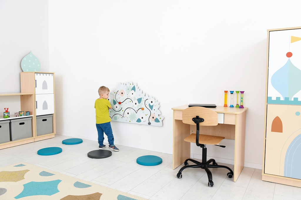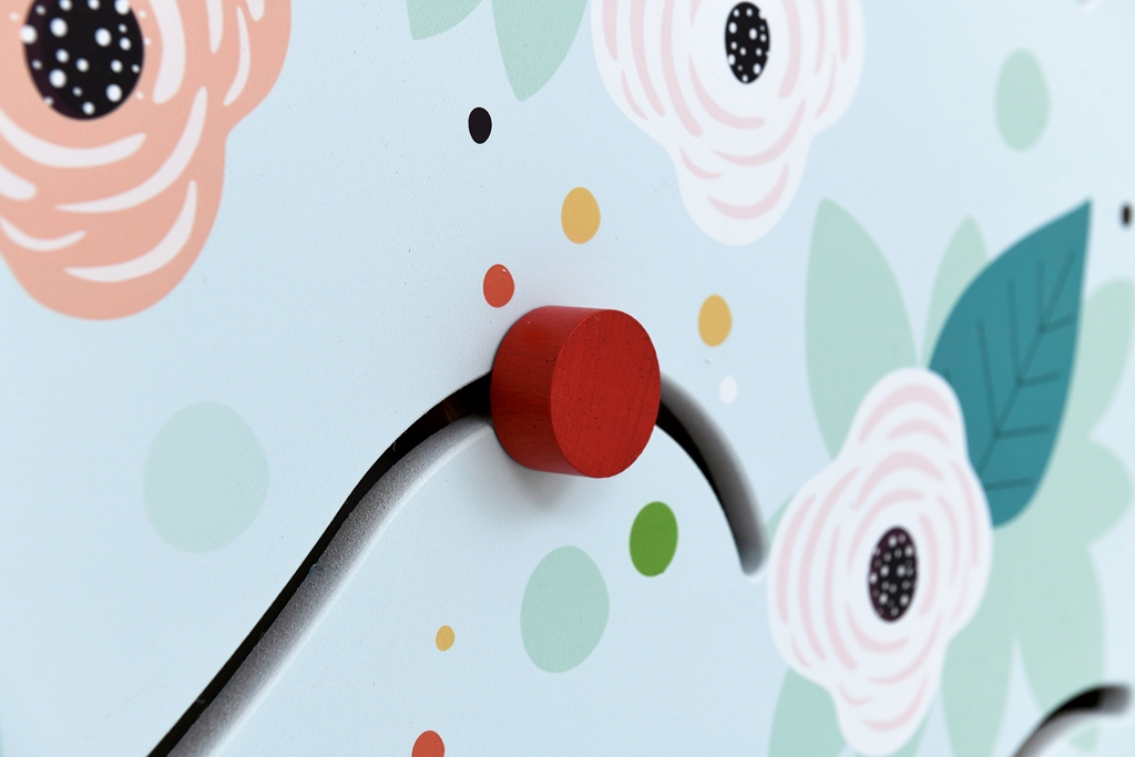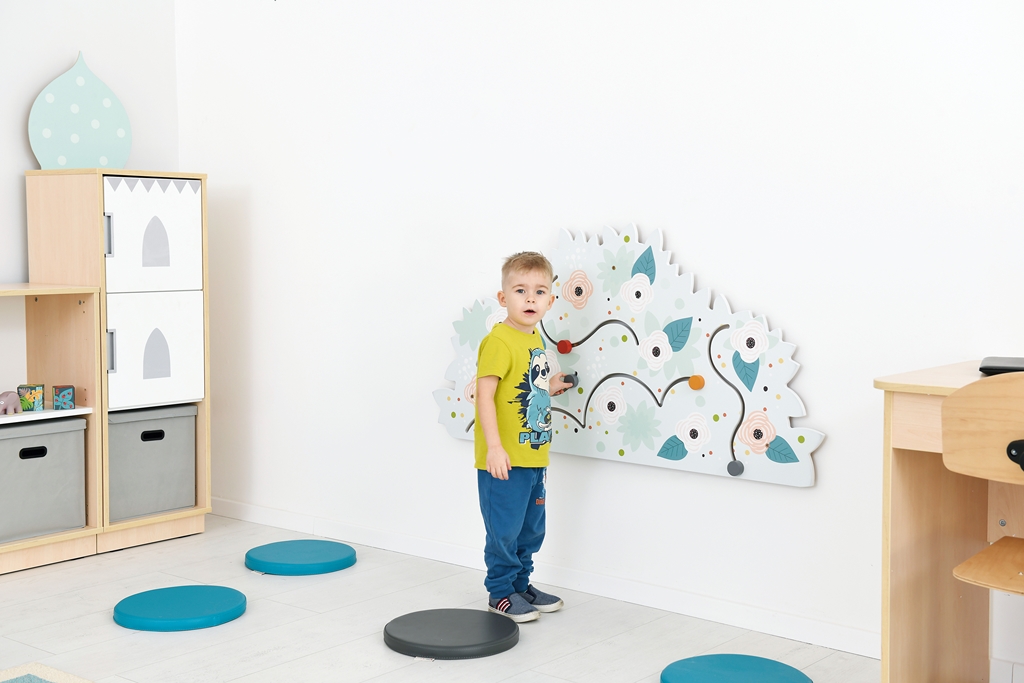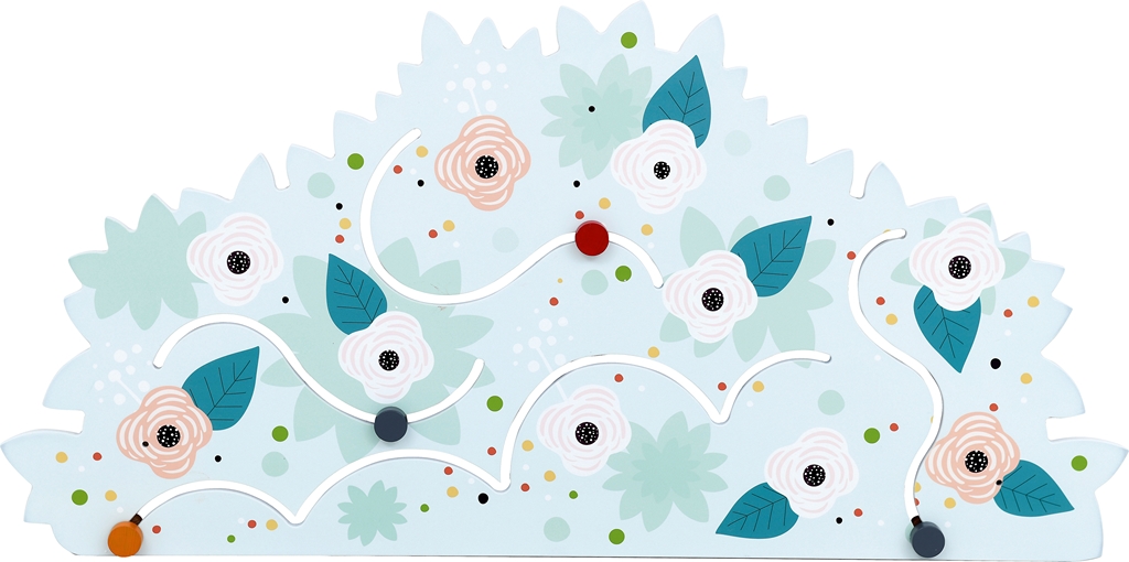 Termék mérete: 135x67,5 cm Anyaga: MDF bútorlap A falra szerelhető kékes árnyalatú rózsabokrot ábrázoló vonalvezető vidám és színes megjelenésével nem csupán a dekorációért felel, hanem készségfejlesztő feladatokat is lehet vele végezni. A fali vonalvezetők lehetőséget biztosítanak a gyerekeknek arra, hogy a nagymozgások gyakorlása által megalapozódjanak az iskolaérettséghez fontos finommotorikus készségeik, összehangolódjon a szem-kéz koordinációjuk. A számos lehetőséget kínáló játék változatos feladatokat kínál. Használatával fejleszthető a figyelem, a koncentráció, az ok-okozati összefüggések felismerésének lehetősége. Esztétikus formája, kellemes színvilága egyaránt ösztönzően hat a legkisebbekre, az óvodás- és az iskoláskorú gyermekekre egyaránt. A falra fogatása az egységcsomagban érkező csavarral és dübellel lehetséges.