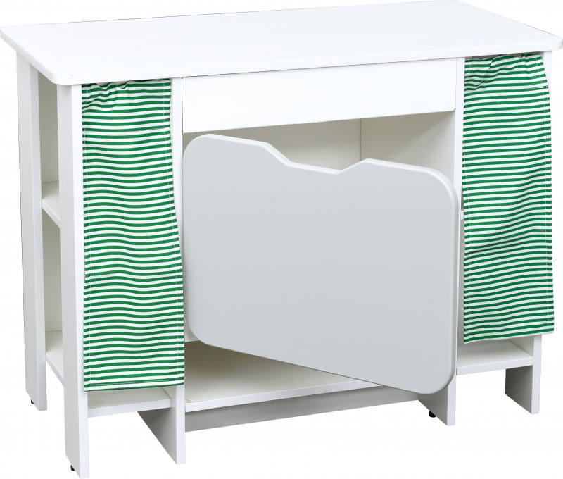 Ez a széles polcos kis szekrény kiválóan alkalmas végelemnek a színes konyhabútorhoz. Így a termék térbeállítva is jól mutat és sok gyermek tud egyszerre szerepjátékot játszani.
