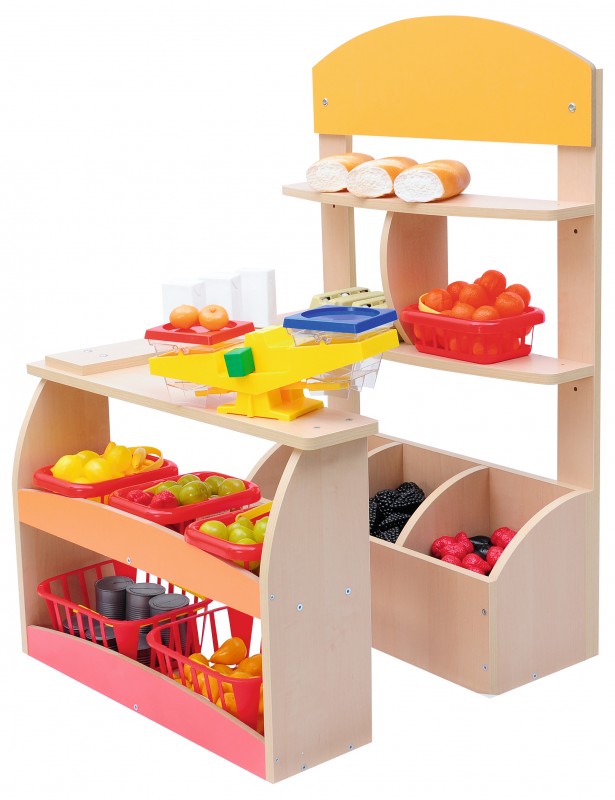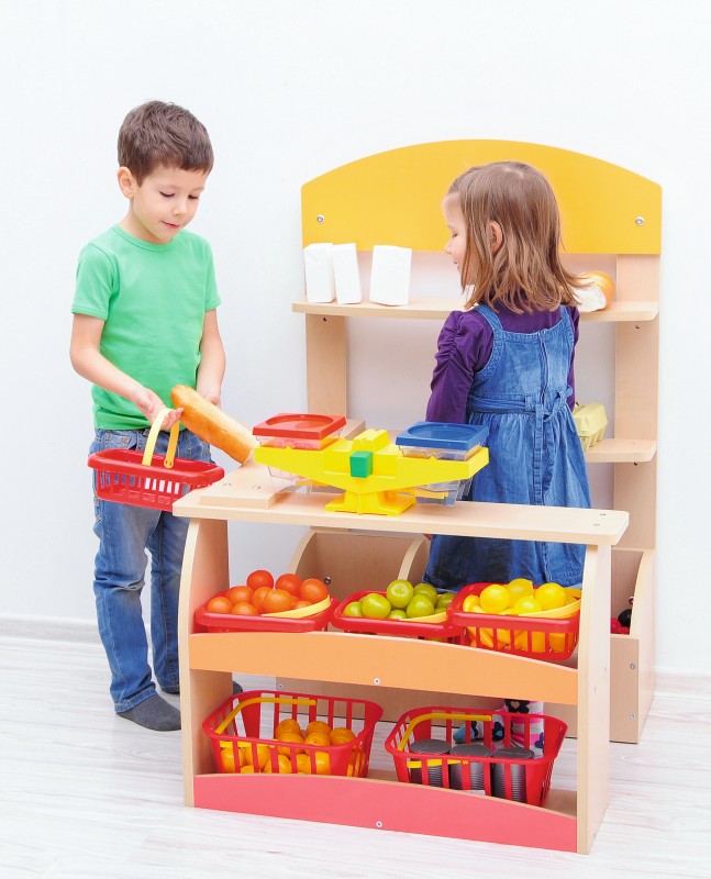 Kialakítása lehetővé teszi, hogy a gyerekek boltost és vásárlót játszva fejlesszék kommunikációs készségüket és számolási gyakorlatukat.