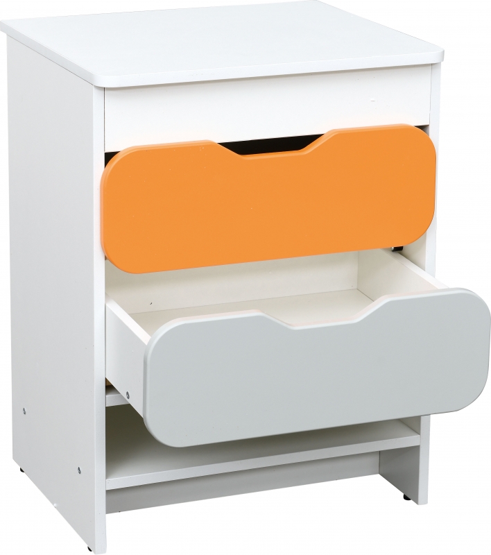 A modul 12 mm vastag, fehér laminált lapból, az előlap pedig színes MDF lapból készült. A két fiók kihúzható, tárolásra alkalmasak. - méretei: 53x39,2x34 - fiókok belső mérete 26,6x33,2x6,6 cm, - polc 36,6x29,8x8 cm