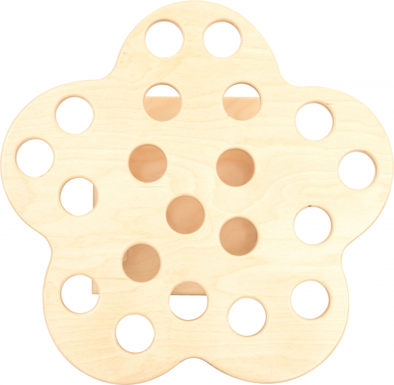 Virágot ábrázoló, falraszerelhető, rétegelt falemezből készült üzenőtábla. Mérete: 53x52x15 cm. Lyukak száma: 20.