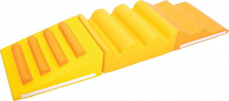 A szivacsmodul-érzékelős trapéz elem oldalán tépőzár helyezkedik el, így több elem is biztonságosan összeilleszthető. A trapézon granulátummal töltött félhengerek vannak. Motoros koordináció fejlesztésére szolgál.