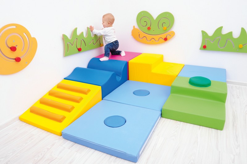 Mérete: 60x50x20 cm, anyaga: műbőrrel bevont habszivacs. A szivacsmodul-kocka oldalán tépőzár helyezkedik el, így több elem is biztonságosan összeilleszthető. Motoros koordináció fejlesztésére szolgál.