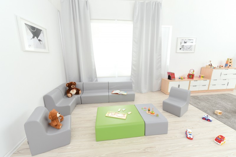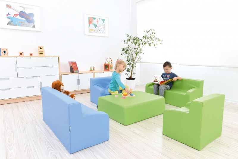 Színes habszivacs asztal, tartós, PVC anyaggal borítva, könnyen tisztán tartható. Az anyag ftalátmentes. Mérete: 78x68x24 cm