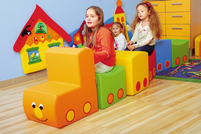 A vonat elemeit külön ülőkeként is alkalmazhatjuk. Színei szépek, vonzzák a tekintetet.