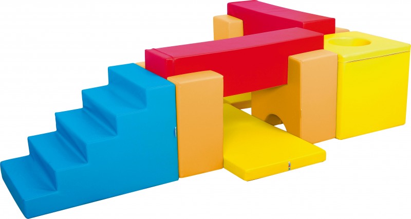 A modulszett az alábbi elemeket tartalmazza: - 1 db Lépcsőelem 90x60x60 cm - 1 db Lyukas kocka elem 60x60x60 cm (lyuk átmérő 30 cm) - 4 db Multifunkciós elem - 2 db Gerenda elem 120x30x30 cm - 2 db matrac 60x120x7 cm Teljes méret összeállítva: 180x270 cm, anyaga: műbőrrel bevont habszivacs. 12 hónapos korú gyermekek használatára CE minősítéssel ellátva!