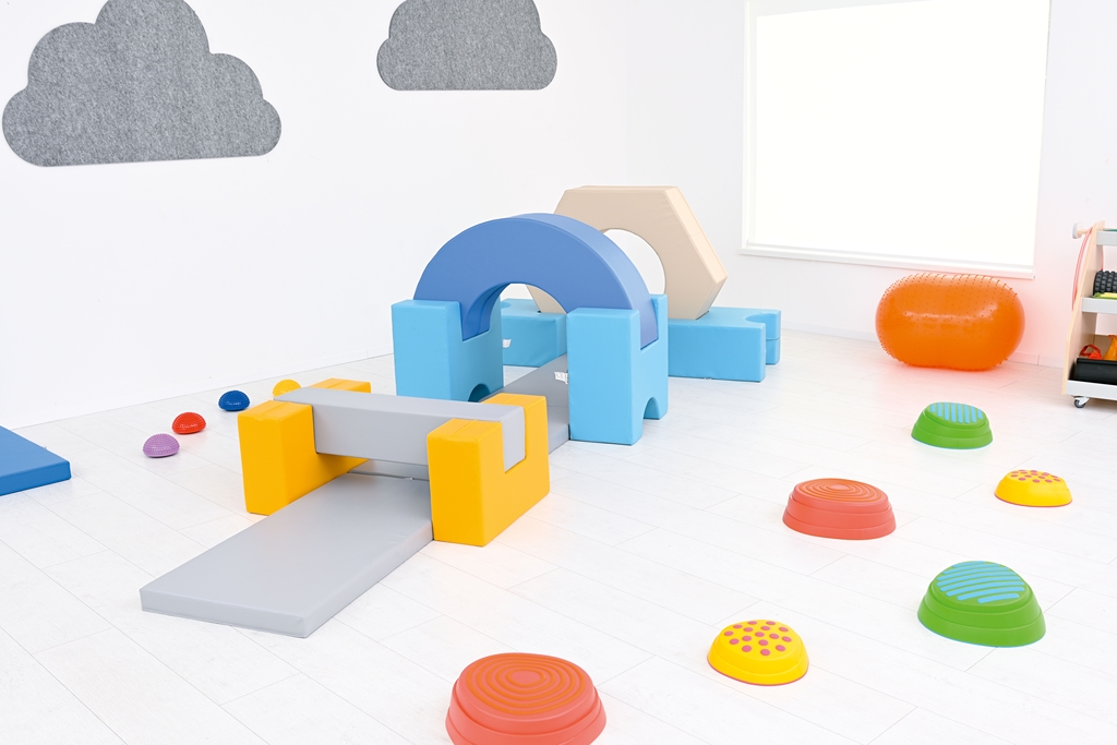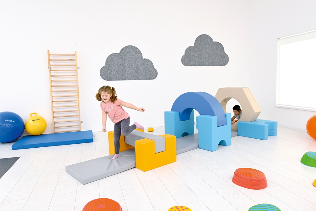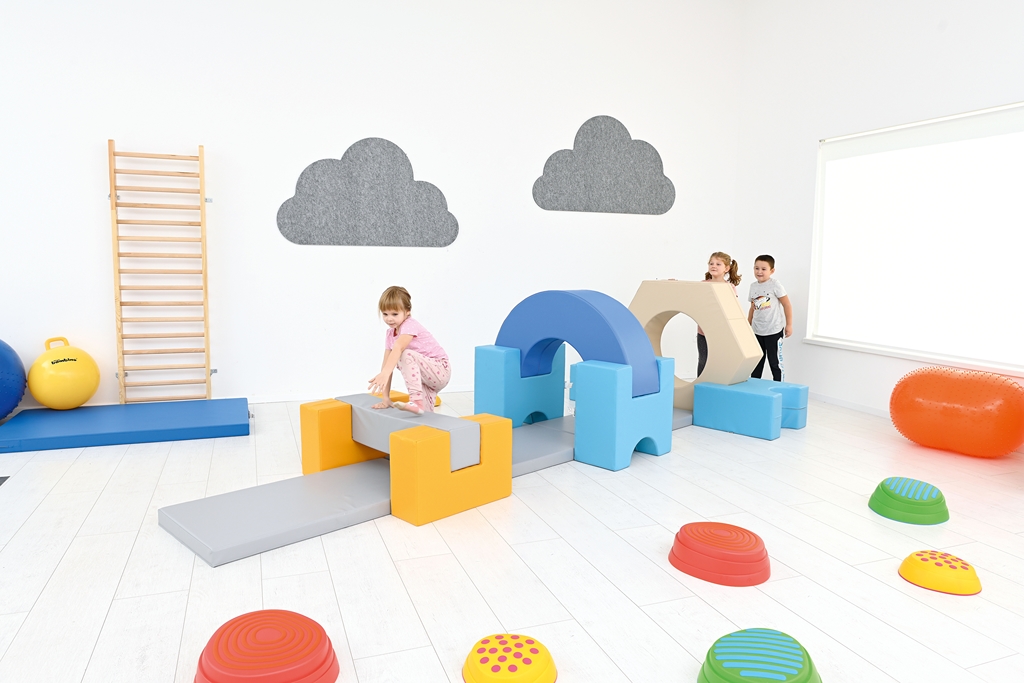 A mozgásfejlesztő szett kimondottan alkalmas a mozgáskoordináció, az egyensúlyérzék, a problémamegoldó képesség és a testséma fejlesztésére is.