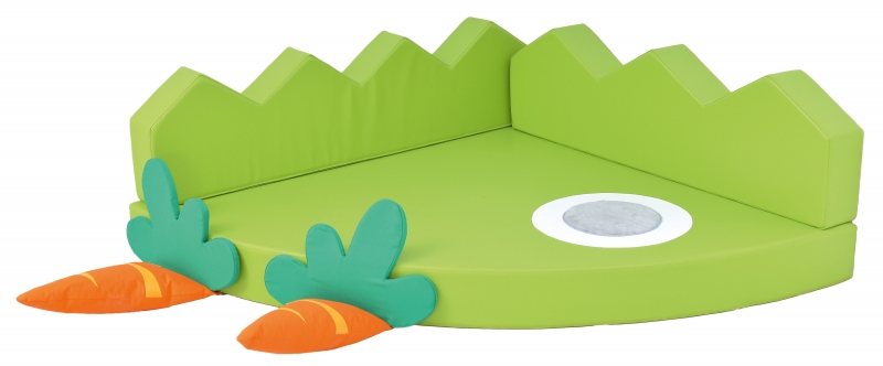 A vidám sarok párna segítségével kelleme, vidám pihenősarkot alakíthatunk ki a gyerekek számára. 2 sárgarépa petrezselyemmel, tépőzárral sárgarépa 25x50 cm petrezselyem 43x30 cm. Méret: 135x135x50 cm, Matrac vastagsága: 15 cm, átmérője: 25 cm. anyaga: Műbőrrel bevont habszivacs. 24 hónapos korú gyermekek használatára CE minősítéssel ellátva!
