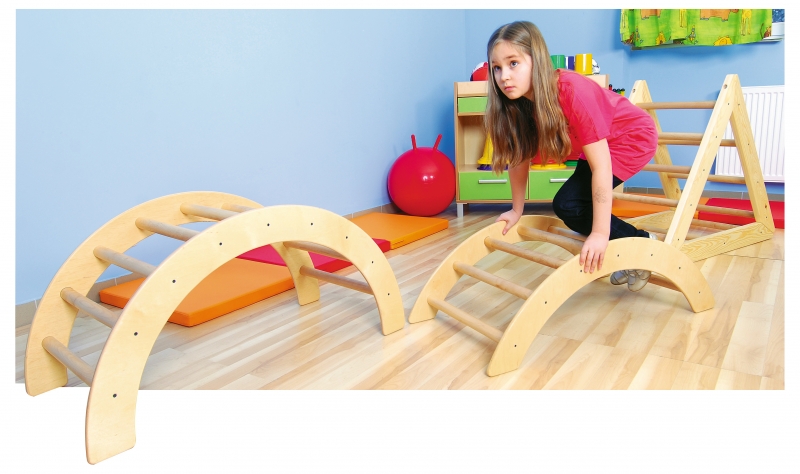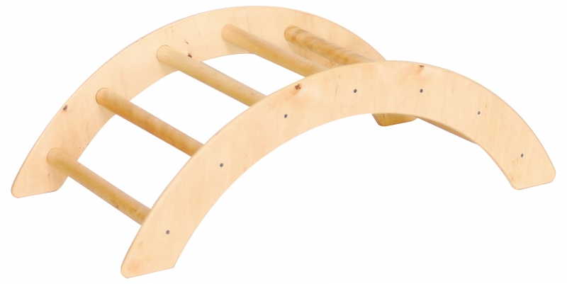 A félkör alakú, tömör fa mászóka fejleszti a gyermek egyensúlyozó képességét, nagy mozgását, a szem-kéz és a szem-láb koordinációját. Használat közben mozgáskoordinációja fejlődik, biztonságérzete erősödik. Termék mérete: 49x98x32 cm 7 db, 3,5 cm széles mászó rúd Anyaga: Fa 3 éves kor alatt nem ajánlott. Felnőtt felügyelete mellett használható.