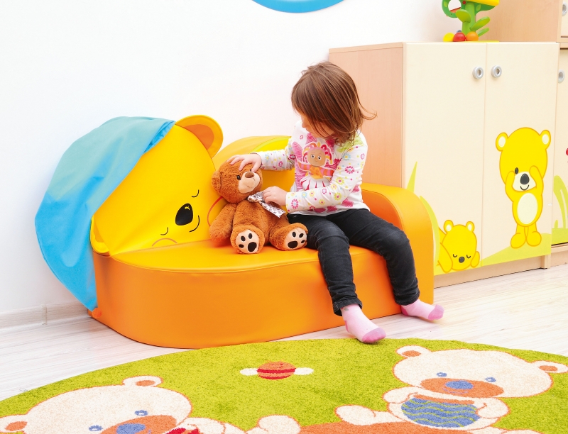 Az alvó mackót ábrázoló gyerekkanapé kimondottan színes és vidám kiegészítője lehet a gyerek- és csoportszobáknak egyaránt.