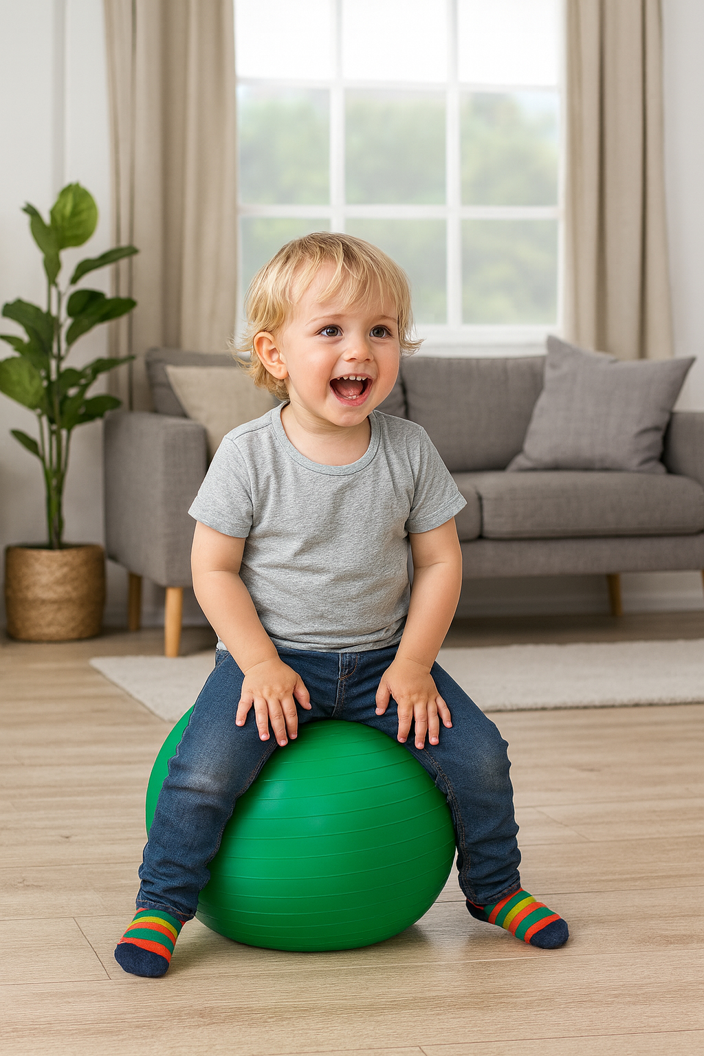 Ez a gimnasztikai labda sokoldalú eszköz mozgásfejlesztéshez, játékos tornához vagy gyógytorna célokra.