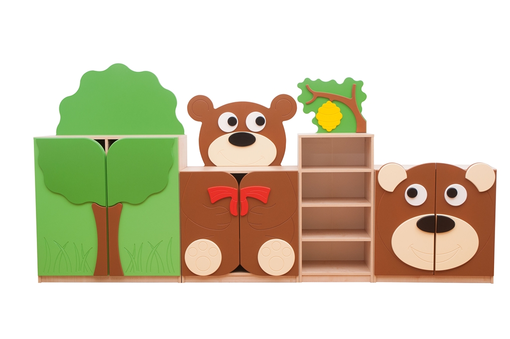 A Teddy macik szekrénysor vidám és barátságos kialakításával a gyermekszobák és óvodai helyiségek igazi kedvence lehet.