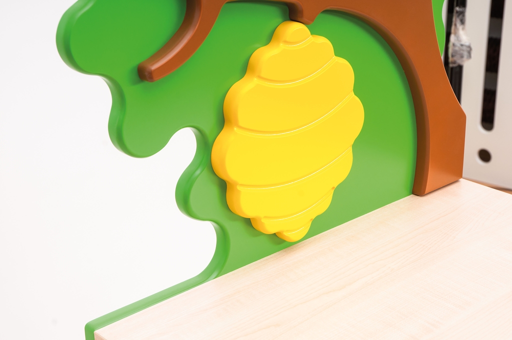 A szekrények 18 mm vastag juhar laminált lapból készültek, színes MDF ajtókkal és dekorációs kiegészítőkkel. Lekerekített élek és ujjbecsípődést gátló ajtók biztosítják a biztonságos használatot.