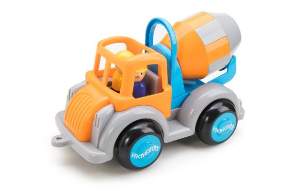 A betonkeverő 25 cm méretű, négykerekű játékjármű, 1 db, a fülkébe rögzíthető sofőr figurával.