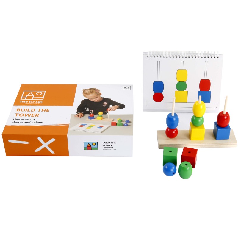Tartalma: - 1 db füzet feladatokkal - 1 db fa állvány, műanyag pálcákkal - 12 db fa forma (4 színben) - mágnessel záródó tároló doboz