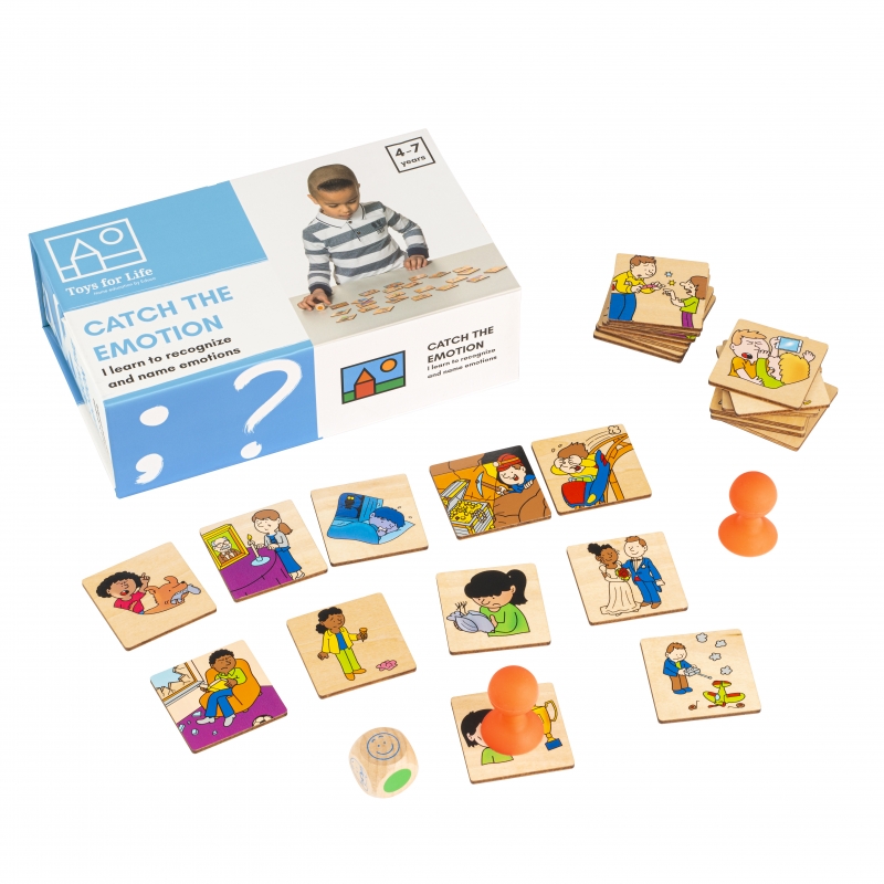 Tartalma: 24 db fa helyzetkártya (5x5 cm) fából készült érzelemkártya (2,5x2,5 cm) 1 tapadókorong 1 érzelem dobókocka mágneses tárolódoboz (21x12x6 cm)