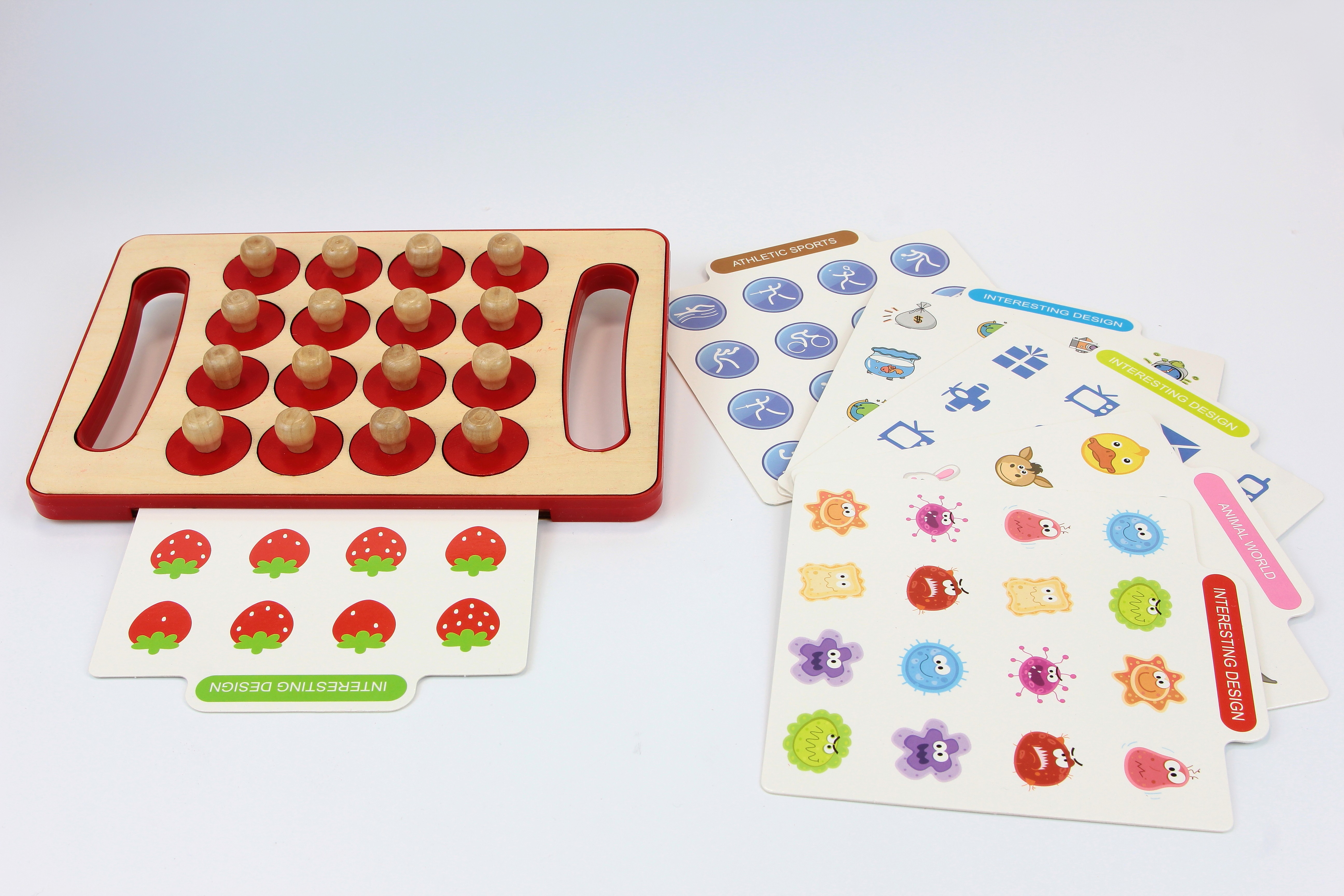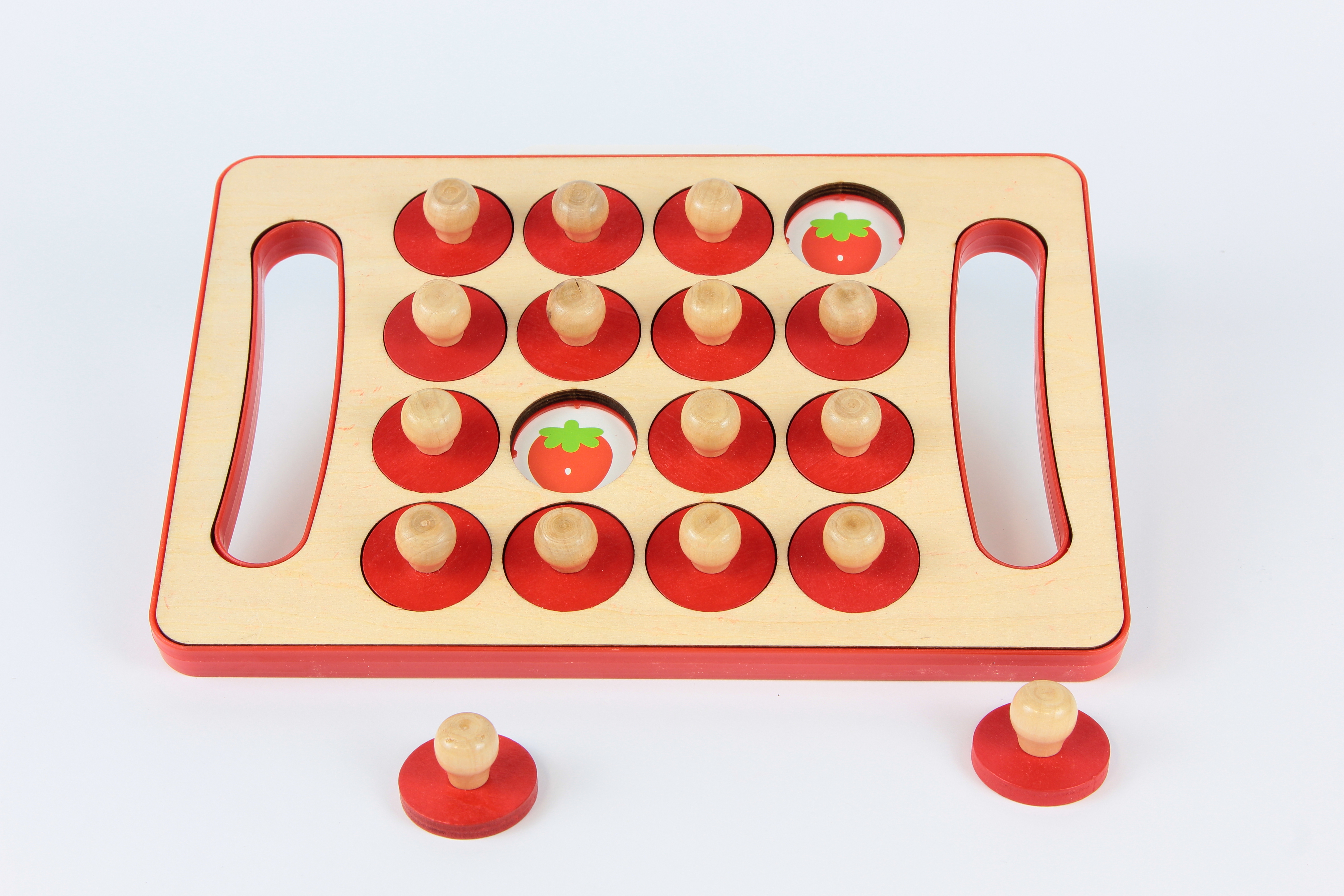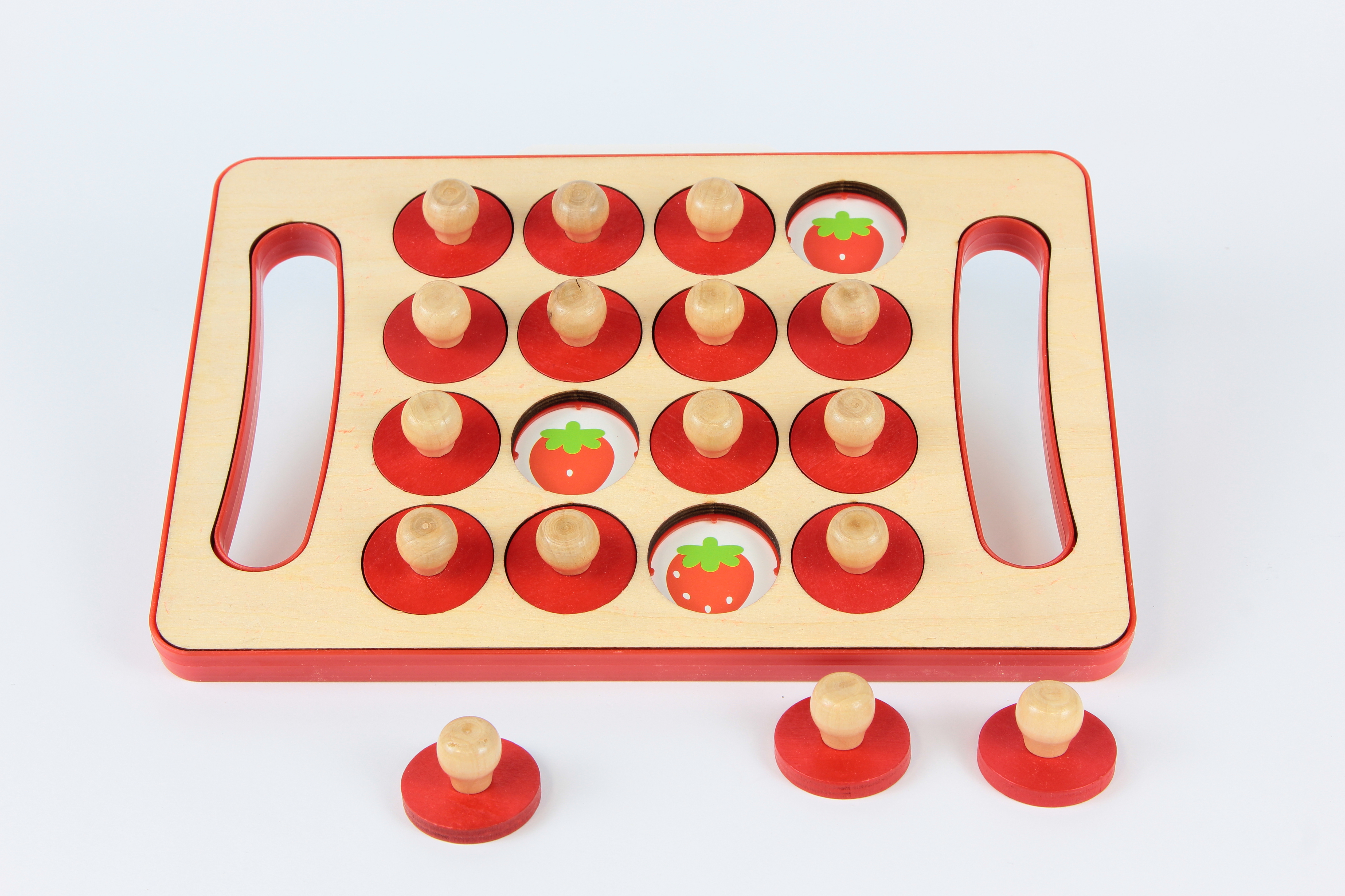Tartalma: 1 db fa tábla 16 db piros, fogantyús korong 6 db kétoldalas minta- és feladványkártya (gyümölcsök, állatok, sportok, figurák stb.) Az ár 2025.12.31-ig érvényes!