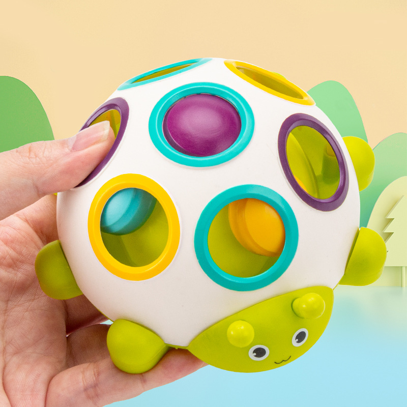 Katica formájú logikai színegyeztető fejlesztőjáték Ez a vidám, katicára hasonlító játék egy különleges színes buboréklabda, amely remekül fejleszti a finommotorikát, színfelismerést és logikai gondolkodást. A cél, hogy a gyermek a színes buborékokat a megfelelő színű gyűrűkbe juttassa, átnyomva őket a labda belsején. 12 hónapos korú gyermekek használatára CE minősítéssel ellátva! Anyaga: műanyag