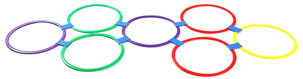 A tíz darab 36 cm-es színes karikát bármilyen formában elhelyezhetünk és sok változatban használhatjuk. Lerakhatjuk egymás után vagy akár körbe is, lehet közel és távolabb is egymástól, sőt akár összekapcsolhatjuk őket egymással az összekötő elem segítségével így az ugráló pálya bárhogy beállítható. 3 db babzsák is tartozik a játékhoz, így még szórakoztatóbb és sokoldalúbb lehet a játék. Kültéren és beltérben is használható.