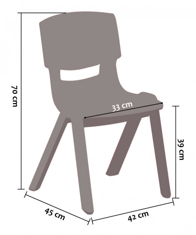 Rakásolható, kis helyen tárolható! Könnyen tisztítható Stabil, egybeöntött kialakítás Karcálló Ergonomikus ülőlap mérete: 33 cm. Teljes magasság: 70 cm Ülés magassága: 39 cm Első és hátsó láb közötti méret (külső): 45 cm Első lábak közötti méret (külső): 42 cm