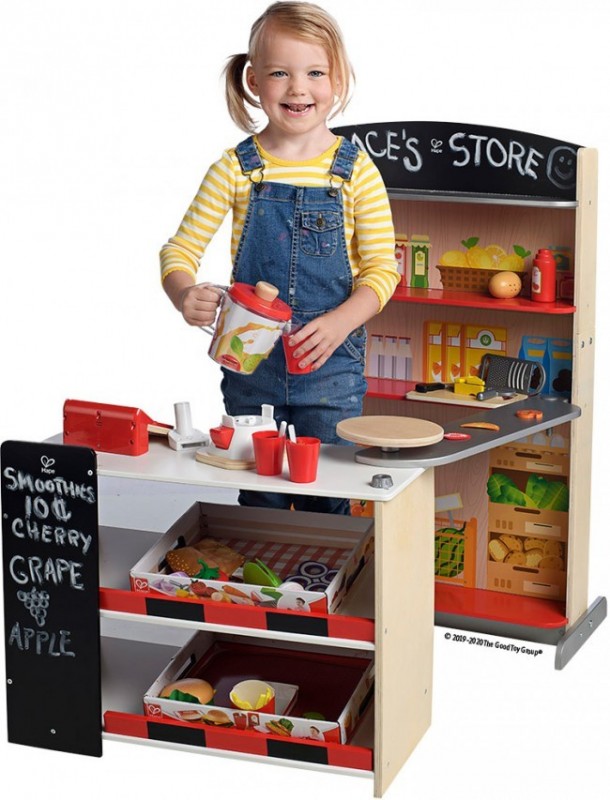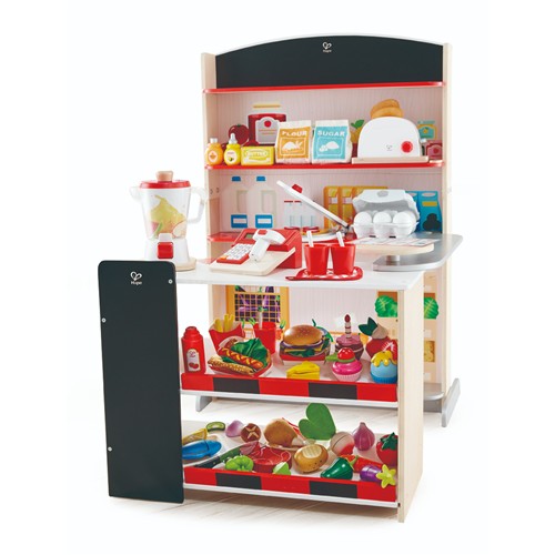 A szerepjátékok nagyon kedveltek a gyerekek körében. Eladó szeretnél lenni, vagy vásárló? Ebben a kisboltban felváltva játszhatjátok mindkét szerepet. Ez a valósághű elárusító pult tartalmaz egy kézi szkennert, amely sípol és villog, amikor megnyomod a hátoldalán található gombot. Használd a pénztárgépet a megvásárolt termékek árának összesítéséhez, majd a fizetéshez húzd le a bankkártyát a terminálban. Most pedig cseréljetek. Legyél Te a vásárló. Hidd el, vásárolni is nagyon jó móka! A képen látható kiegészítőket a készlet nem tartalmazza, a pénztárgépet és a vonalkódleolvasót igen! A polcot és a pultot szabadon mozgathatjuk egymás mellett, hogy a legkényelmesebb kis boltot alakítsuk ki.