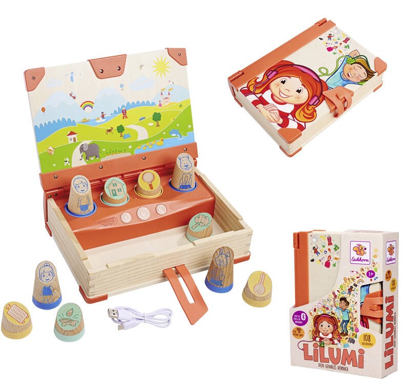 Díjnyertes gyerekkönyv-írókkal együttműködve a Lilumit a 3 éves és annál idősebb kis hallgatók számára készült. Egy-egy novella körülbelül 4 percig tart - éppen elég ahhoz, hogy még a türelmetlen hallgatókat is megragadja. A speciális kialakítás kifejezetten a kisgyermekek kezéhez készült, és különösen alkalmas az önálló, intuitív játékra. A történetek célzott kiválasztásához a Lilumi tartalmazza az összes történet áttekintését. A Lilumi segítségével a gyerekek szabadjára engedhetik fantáziájukat - mindezt internet és kijelző nélkül! Csak fenntartható erdőgazdálkodásból származó fa felhasználásával készült.
