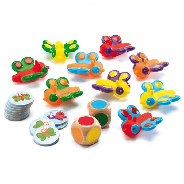 Játékszabály: a legfiatalabb játékos dobjon a dobókockával. A két dobókocka egy színkombinációt ad. Ennek a két színnek megfelelő lepkét kell a játékosoknak minél hamarabb megtalálni és elkapni. Az a játékos, aki a leghamarabb a kezébe veszi a keresett lepkét, zsetont nyer. Pl.: a dobókocka a kék és a piros színt mutatja. A játékosoknak a piros-kék lepkét kell keresniük. Aki elkapja, jutalompontot kap.
