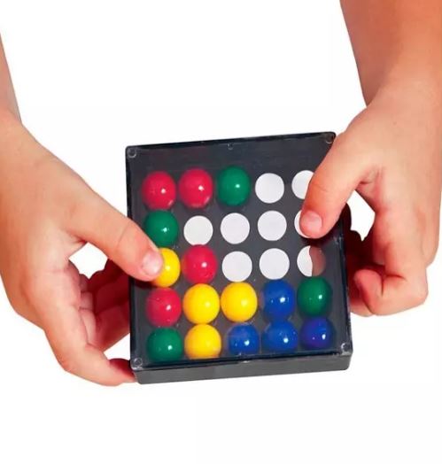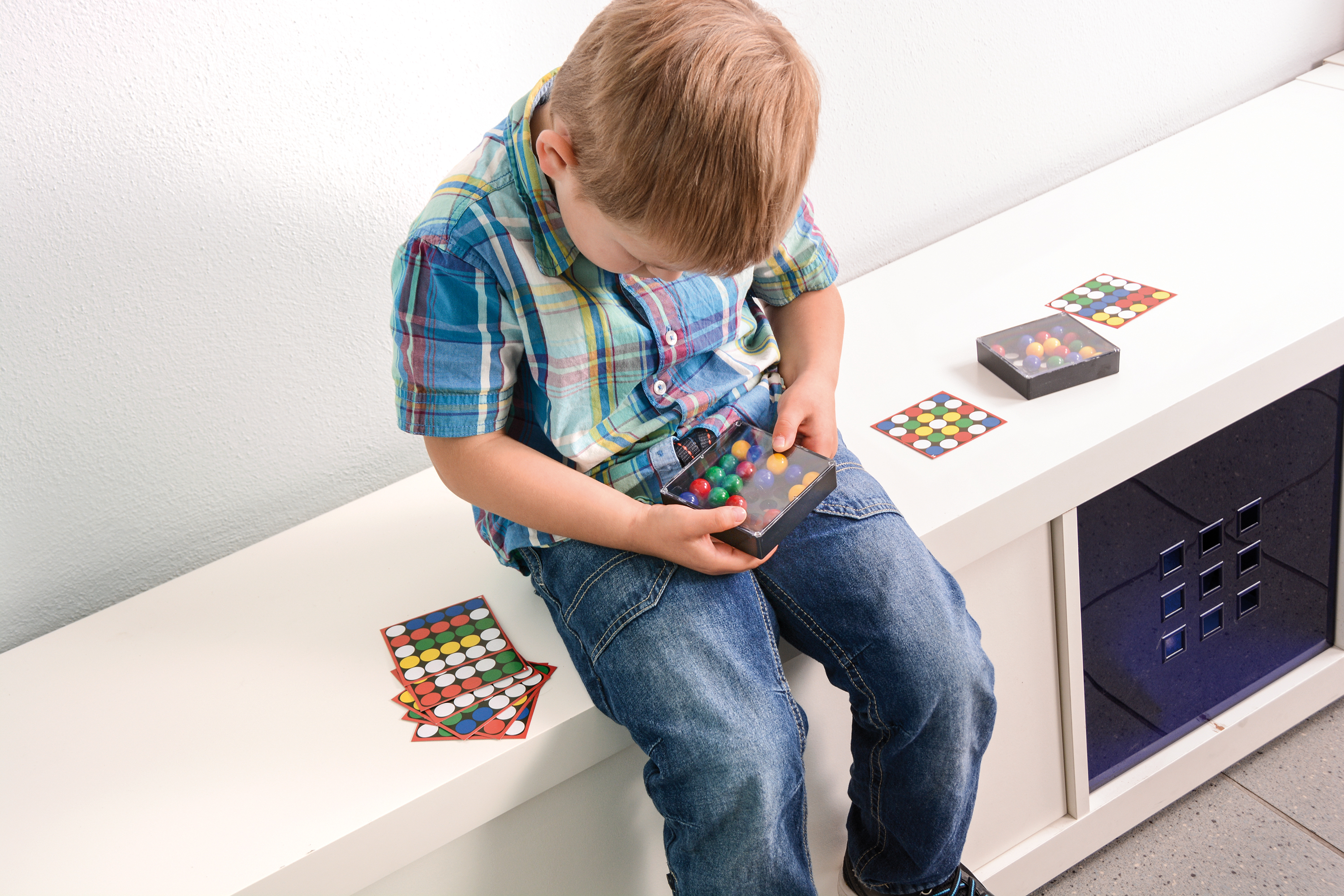 Termék mérete: 9x9x3 cm A játék tartalmaz: - 2 db doboz, színes golyókkal - 14 db feladat kártya 3 éves kortól ajánlott finommotorika és logika fejlesztő játék.