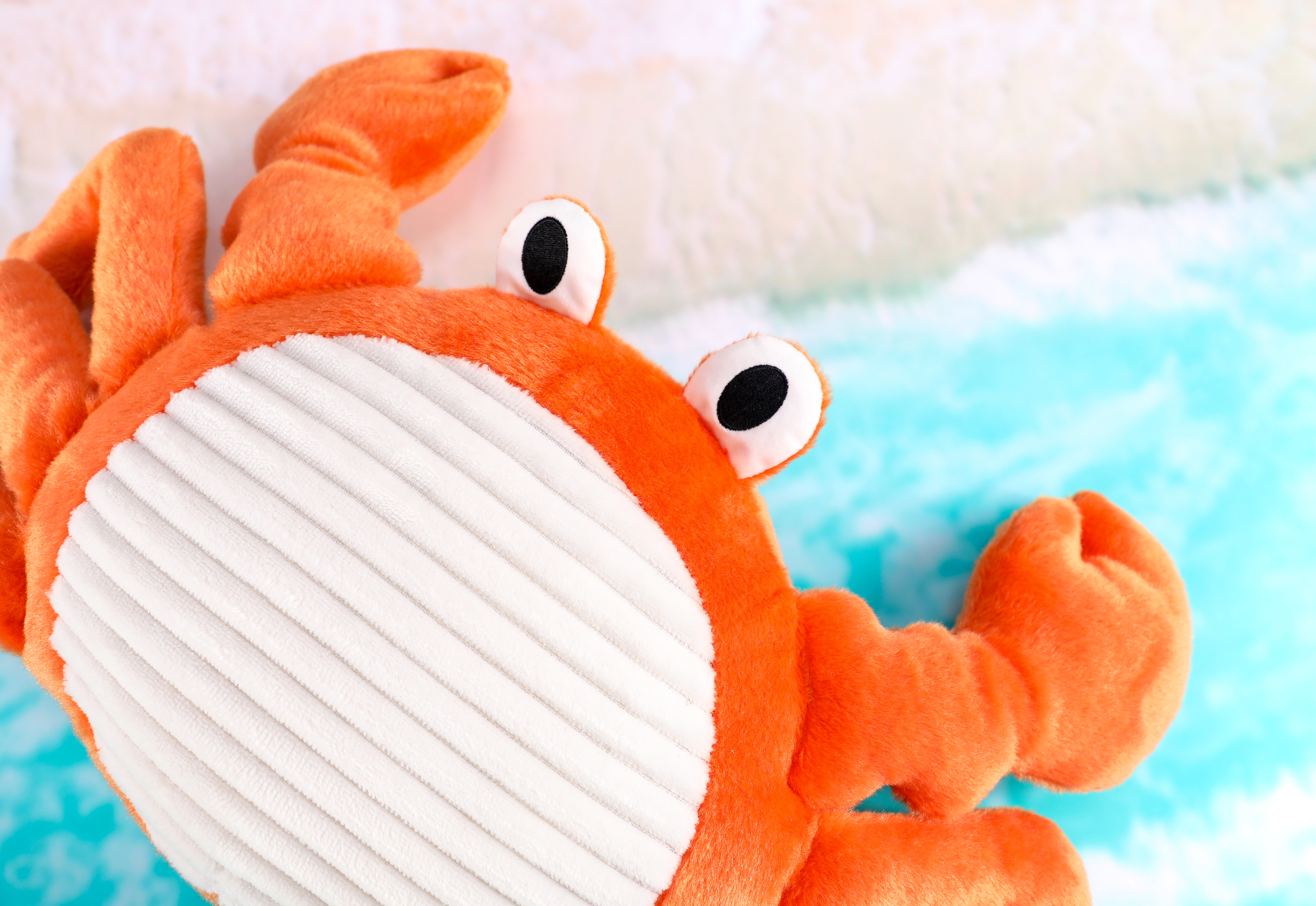 Súlyozott állat – rák 1,3 kg - anyag: 100% poliészter - töltet: agyaggyöngyök - méret: 52x38x13 cm - súly: 1,3 kg - kialakítás: puha plüss test, egyenletes súlyelosztás - tisztítás: kézi mosás, fektetve szárítás - felhasználás: megnyugtatás, szenzoros fejlesztés, koncentráció támogatása