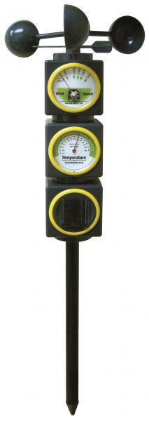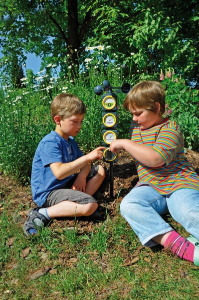 A gyerekek játékosan figyelhetik - és érthetik meg az időjárást. A leszúrható meteorológiai állvánnyal 4 féle értéket mérhetnek: szélerősség, szélirány, hőmérséklet, csapadék, eső.