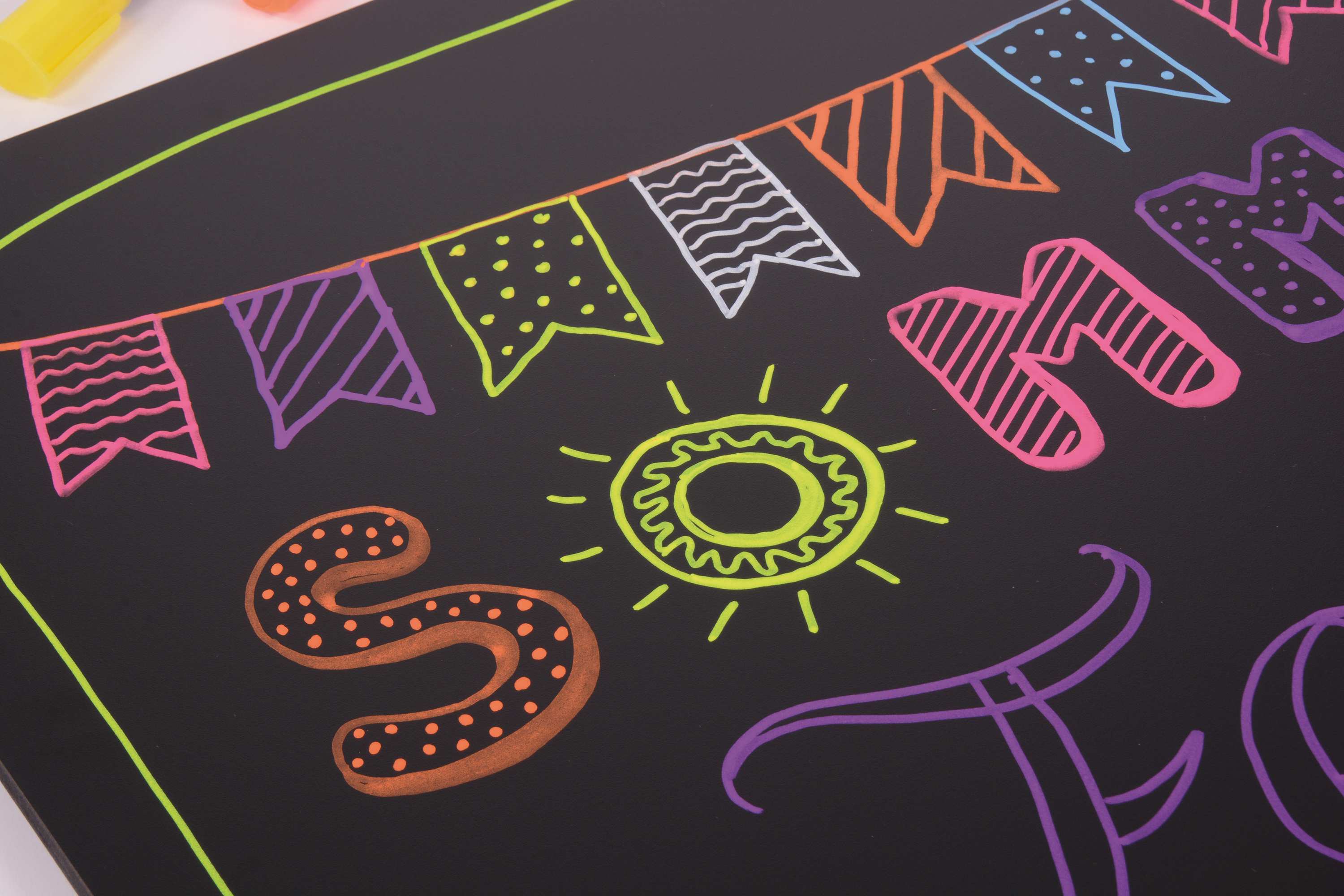 Ezekkel a folyékony krétatollakkal minden erőfeszítés nélkül írhatnak a gyerekek a táblákra, ablakokra, tükrökre, fémre és kerámiára. A kerek hegy ideális a finom vonalakhoz, valamint a területek színezéséhez.