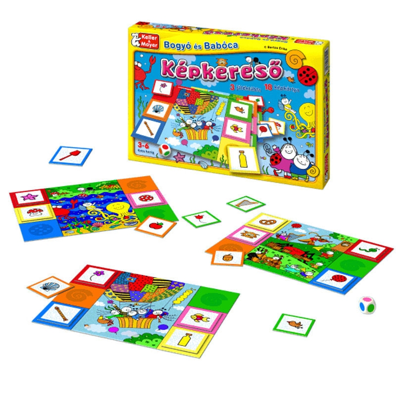 Játék tartalom: 3 db játéktábla 18 db képkártya 1 db szín-dobókocka 1 db játékszabály