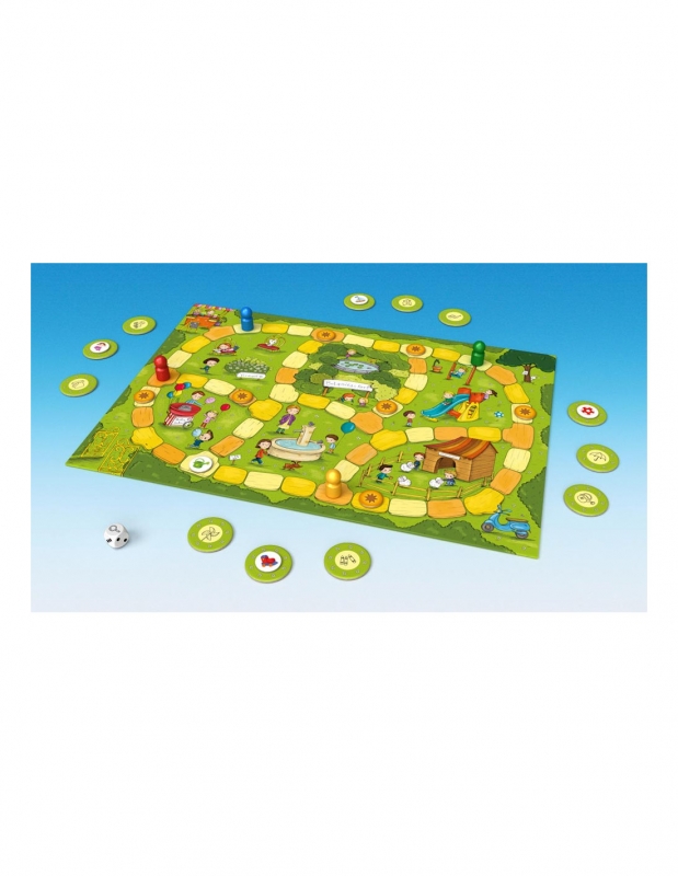 Játékidő kb. 10-20 perc Tartalma: 1 db játéktábla 4 db fabábu 12 db „elveszett” játékkorong 12 db gyűjtőkorong 1 db speciális dobókocka 1 db játékszabály