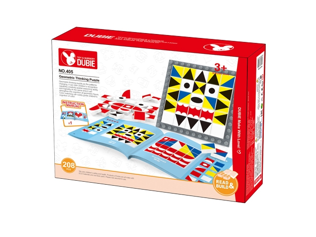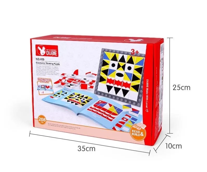 A Dubie mozaiképítője összesen 208 darabból áll. A készletben a mozaik elemeken felül megtalálható egy ötletfüzet és egy alaplap is. Az építőelemeken megjelenő geometriai formák minden része élénk színekkel lett megfestve, így látványos képek készíthetőek belőlük. A füzetet követve előre megtervezett, különböző nehézségi szint alapján besorolt képeket készíthetnek a gyermekek, de lehetőségük van a saját fantáziájuk által megalkotott képek kirakására is. A játék magas minőségű műanyagból készült. Az alaptábla kis szögecses kialakítása miatt a mozaikelemek könnyedén rögzíthetőek hozzá. A doboz mérete: 35x10x25 cm Tartalma: 208 db-os készlet feladatfüzet
