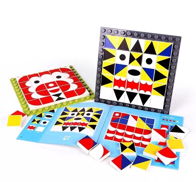 Színes, nagyméretű mozaik lapocskákból rakhatnak ki a kicsik különböző képeket.