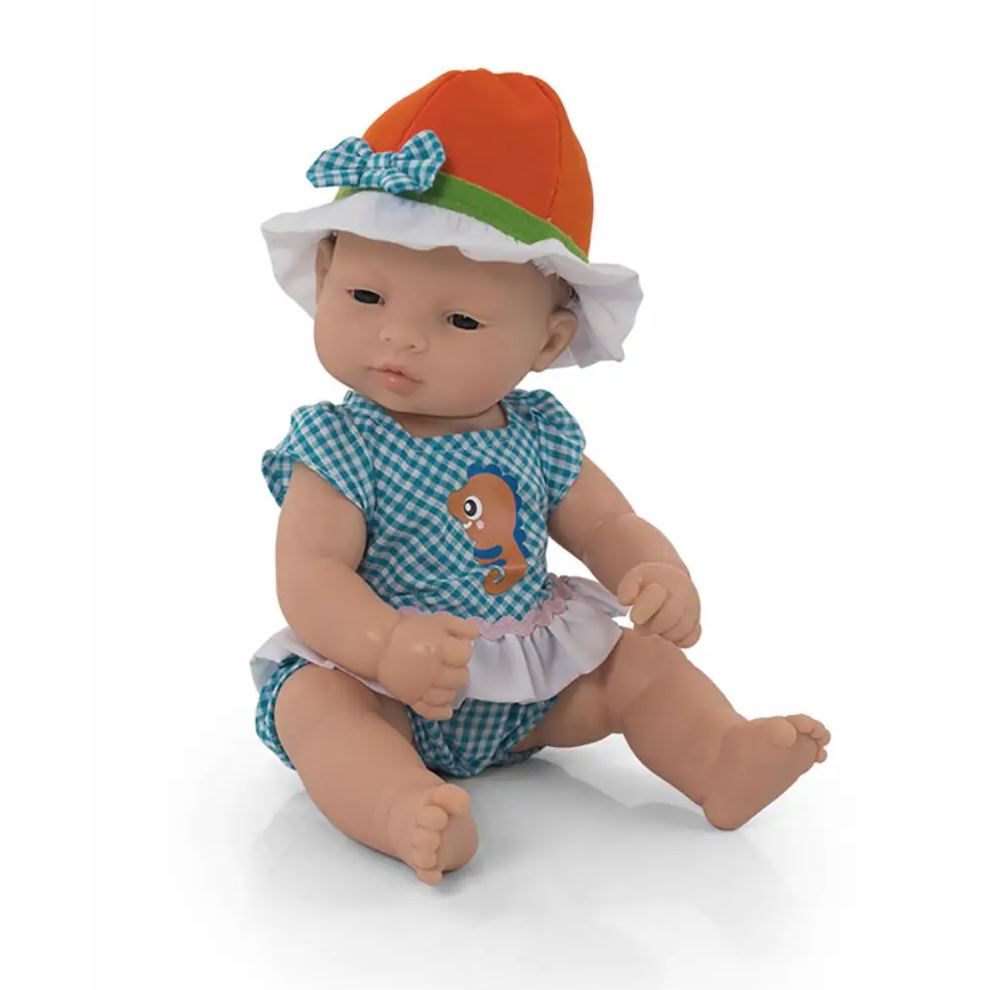 Mérete: 32 cm A baba teste teljesen vízálló, végtagjai hermetikusan illeszkednek a testhez, így fürdethető, kézzel mosható. A műanyag babák nemi jellege egyértelműen felismerhető, ezzel is bemutatva a különböző nemek jellegzetességeit. Az ázsiai babák szeme enyhén húzott, ezáltal a gyermekek már egészen kis korban megismerkedhetnek a világunkban élő embertípusok jellemzőivel. Anyaga: egészségre káros anyagokat nem tartalmazó, rugalmas műanyag, lágy illattal 12 hónapos korú gyermekek használatára CE minősítéssel ellátva!