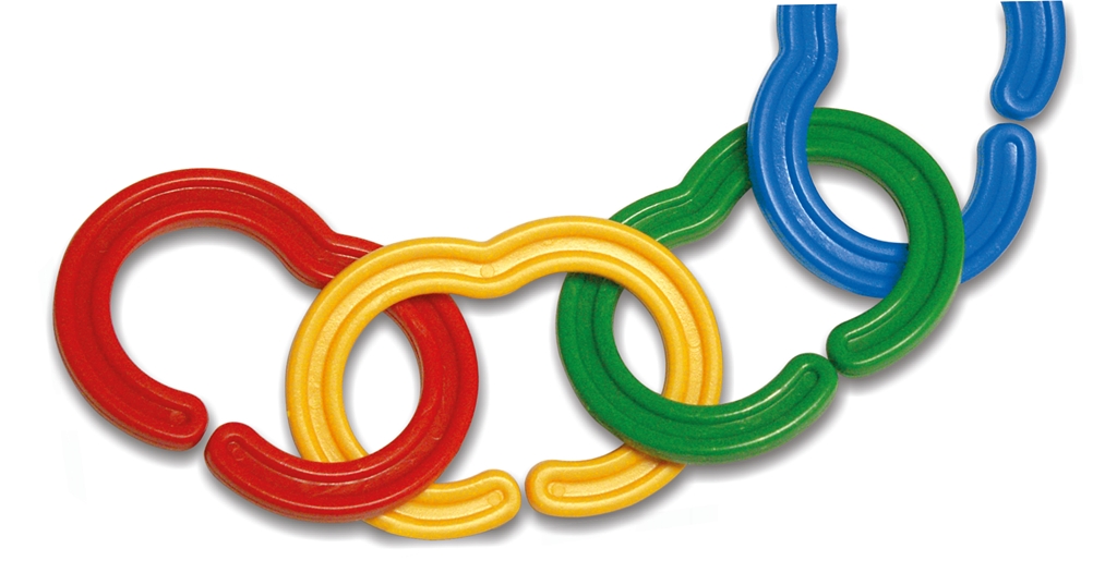 A láncszemek nagy méretének és feltűnő, élénk színeinek köszönhetően a gyerekek élvezettel és biztonsággal gyakorolhatják a lánc- és sorozatalkotást egyaránt.