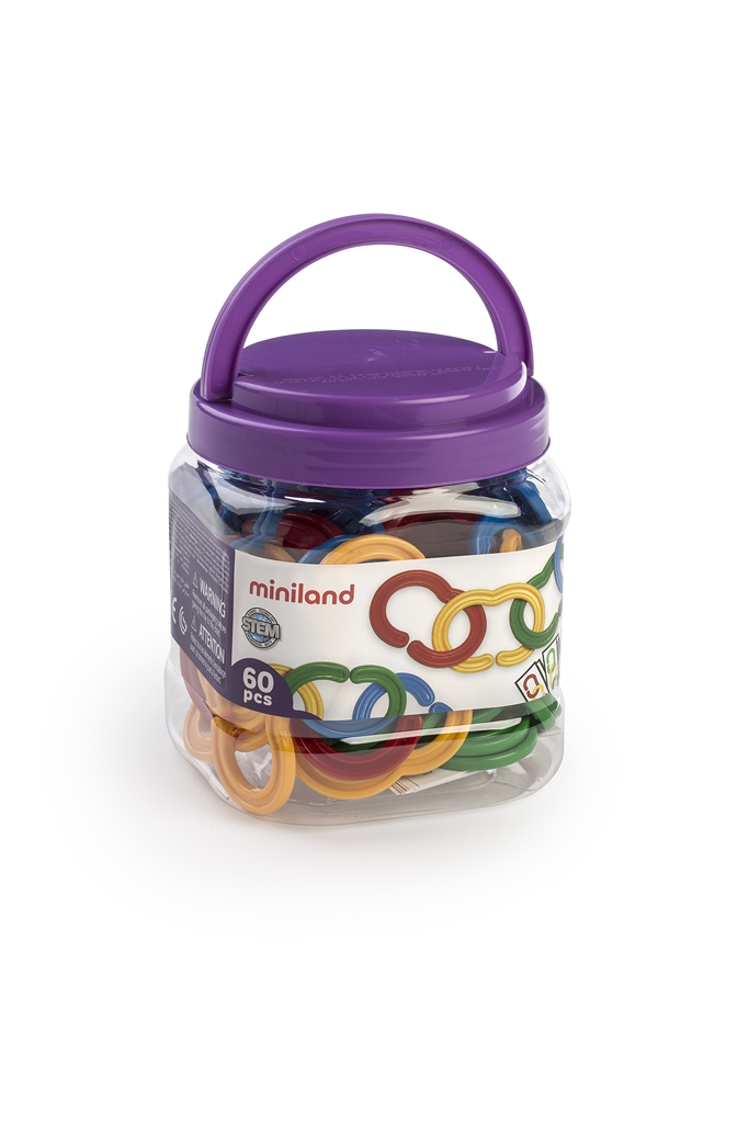 A MINILAND Óriás láncfűző készlete érdekes szórakozást nyújthat az óvodás korosztálynak. A láncszemek nagy méretének köszönhetően már egészen 2 éves kortól ügyeskedhetnek a gyermekek és szabadon fűzhetnek hosszabbnál-hosszabb láncokat.