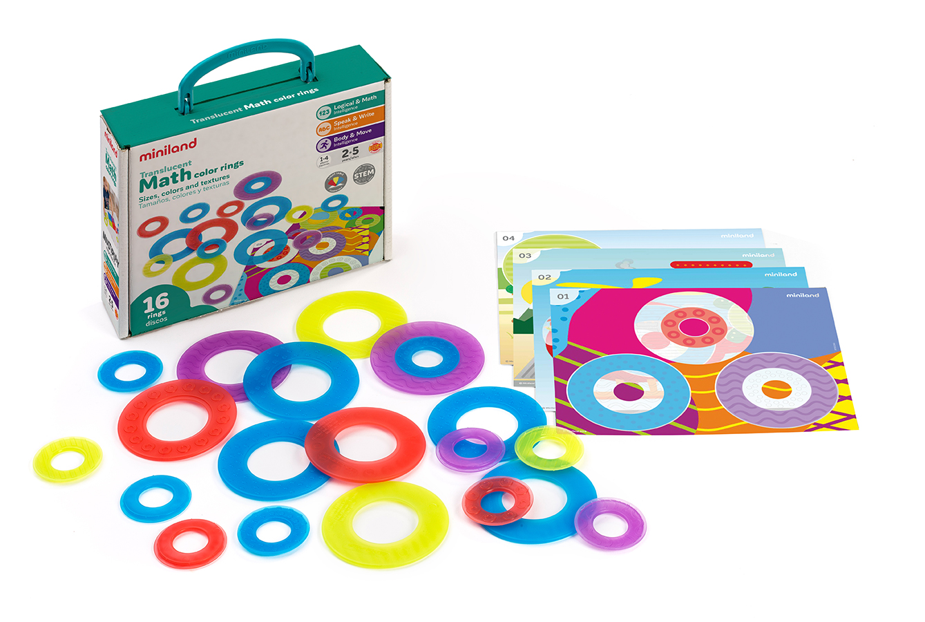Tartalma: - 16 db áttetsző, műanyag gyűrű - 4 db különböző nehézségű feladatkártya Az áttetsző gyűrűk különböző átmérővel, színnel és felületi mintázottsággal vannak ellátva. Műanyag anyaguknak köszönhetően hosszúéletű játékok, továbbá a korongok tisztíthatósága is egyszerű és gyors. A szett egy füllel ellátott karton tárolódobozban érkezik, melyben később tárolhatjuk is az elemeket. 24 hónapos korú gyermekek részére CE minősítéssel ellátva!