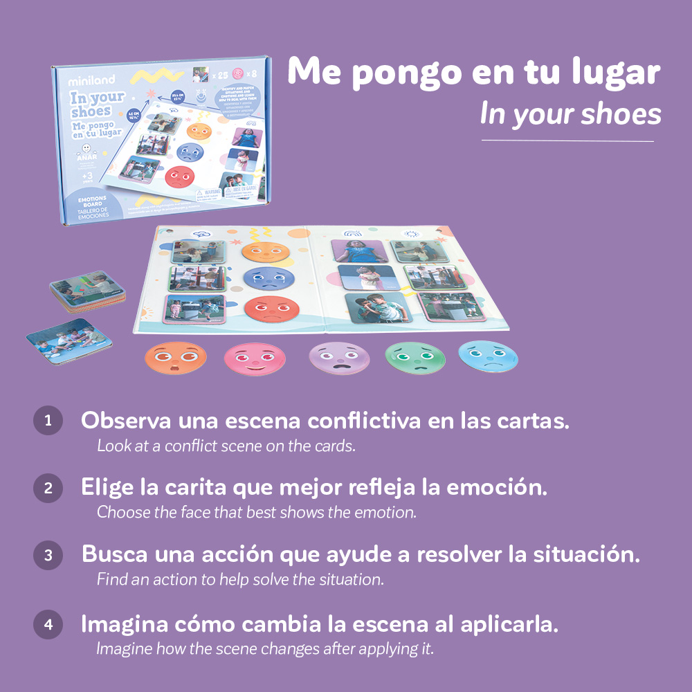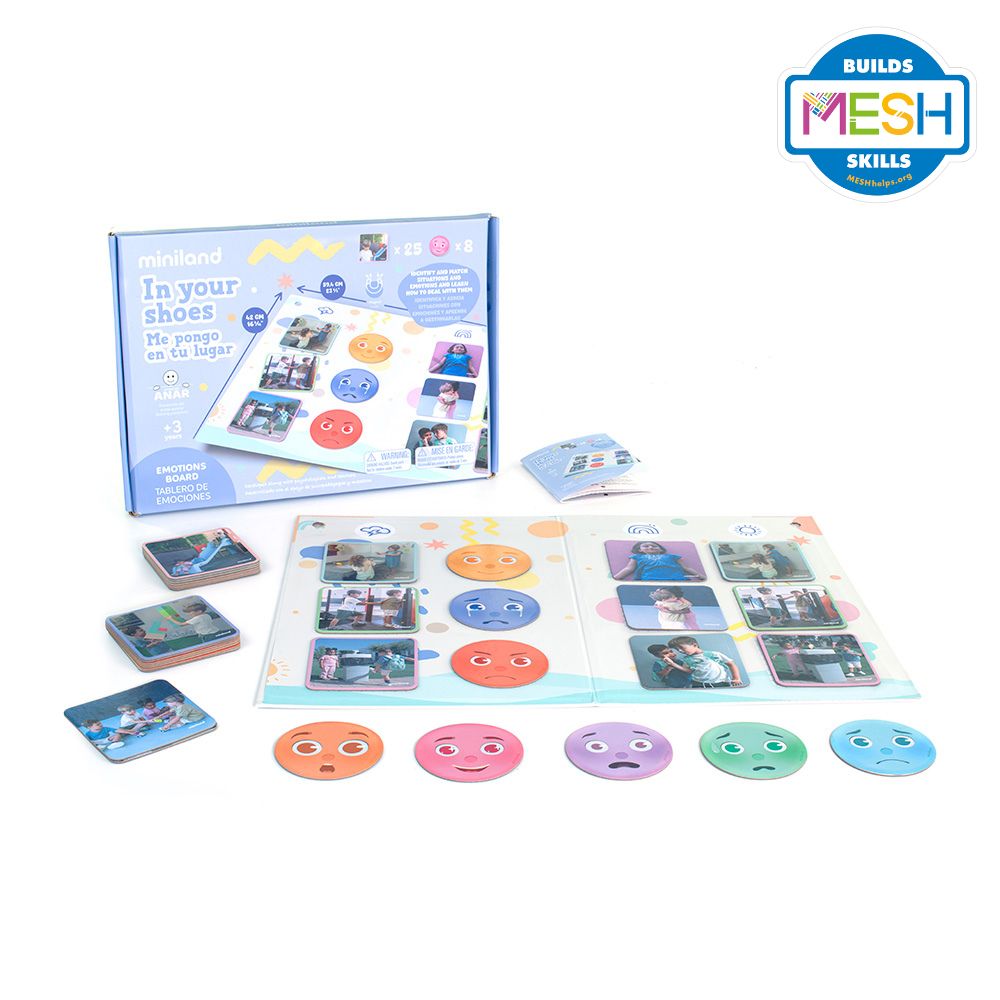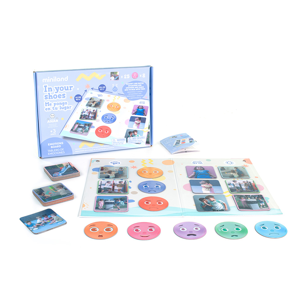 Ez a különleges társasjáték az érzelmi intelligencia és az empátia fejlesztését helyezi a középpontba, és a zaklatás megelőzése érdekében fejlesztették ki. A játék célja, hogy a gyerekek játékos módon sajátítsák el az érzelmek felismerését és kezelését, ezáltal hozzájárulva a harmonikus, támogató társas kapcsolatok kialakításához. Tartalma: - 1 játéktábla - 25 illusztrált kép kártya - 8 érzelmi arckifejezést ábrázoló korong - Oktatási útmutató és játékleírás