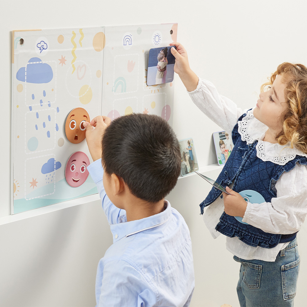 A gyermekek a játéktábla és a képkártyák segítségével különböző érzelmi helyzeteket ismerhetnek meg, majd az érzelmi arckifejezéseket a megfelelő jelenetekhez illesztve gyakorolhatják az érzelmek azonosítását és megértését. A játék során a gyerekek megtanulják felismerni mások érzéseit, és beszélgetéseken keresztül fejlesztik empátiájukat és kommunikációs készségeiket.