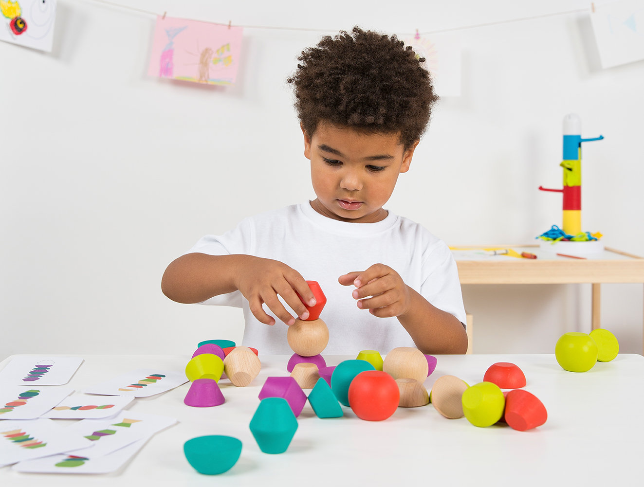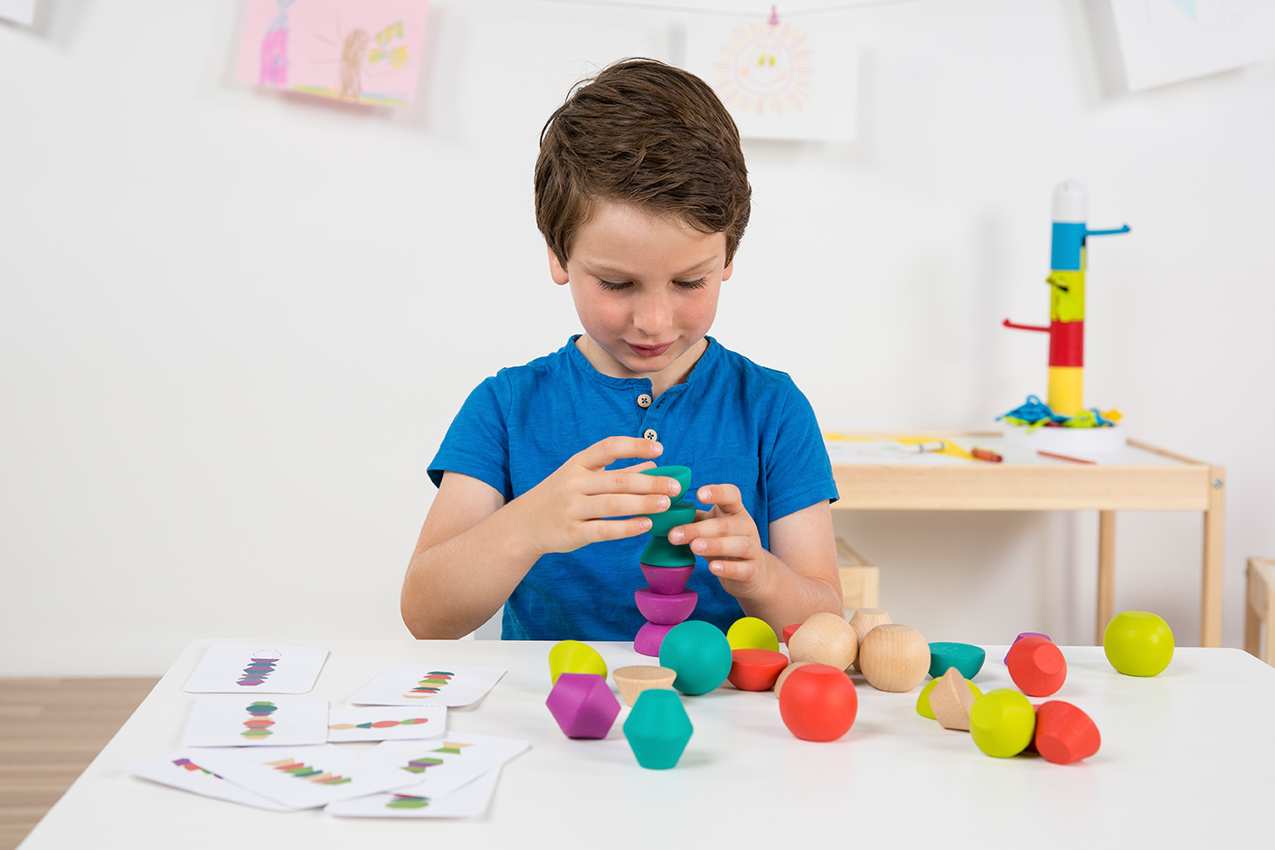 Tartalma: - 30 db fa építőgyöngy - 16 db feladatkártya A készlet fa elemei 100%-ban minősített, ökológiailag fenntartható erdőgazdálkodásból származó fa anyagból készültek. A gyöngyök mind valamilyen geometriai formával rendelkeznek, így különböző matematikai tartalmú feladatokhoz is megfelelőek. Átmérőjük: 4,5 cm