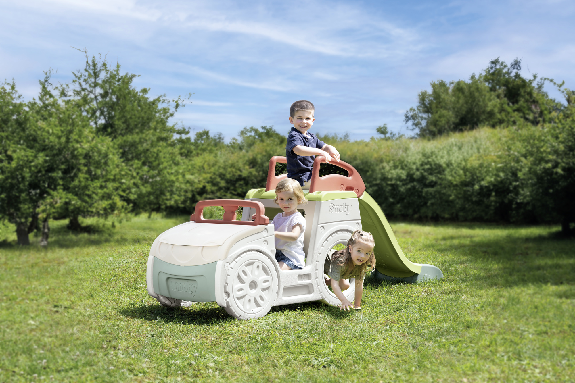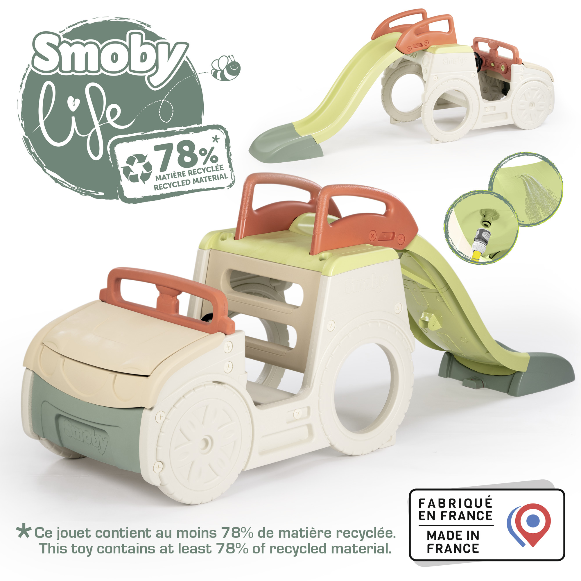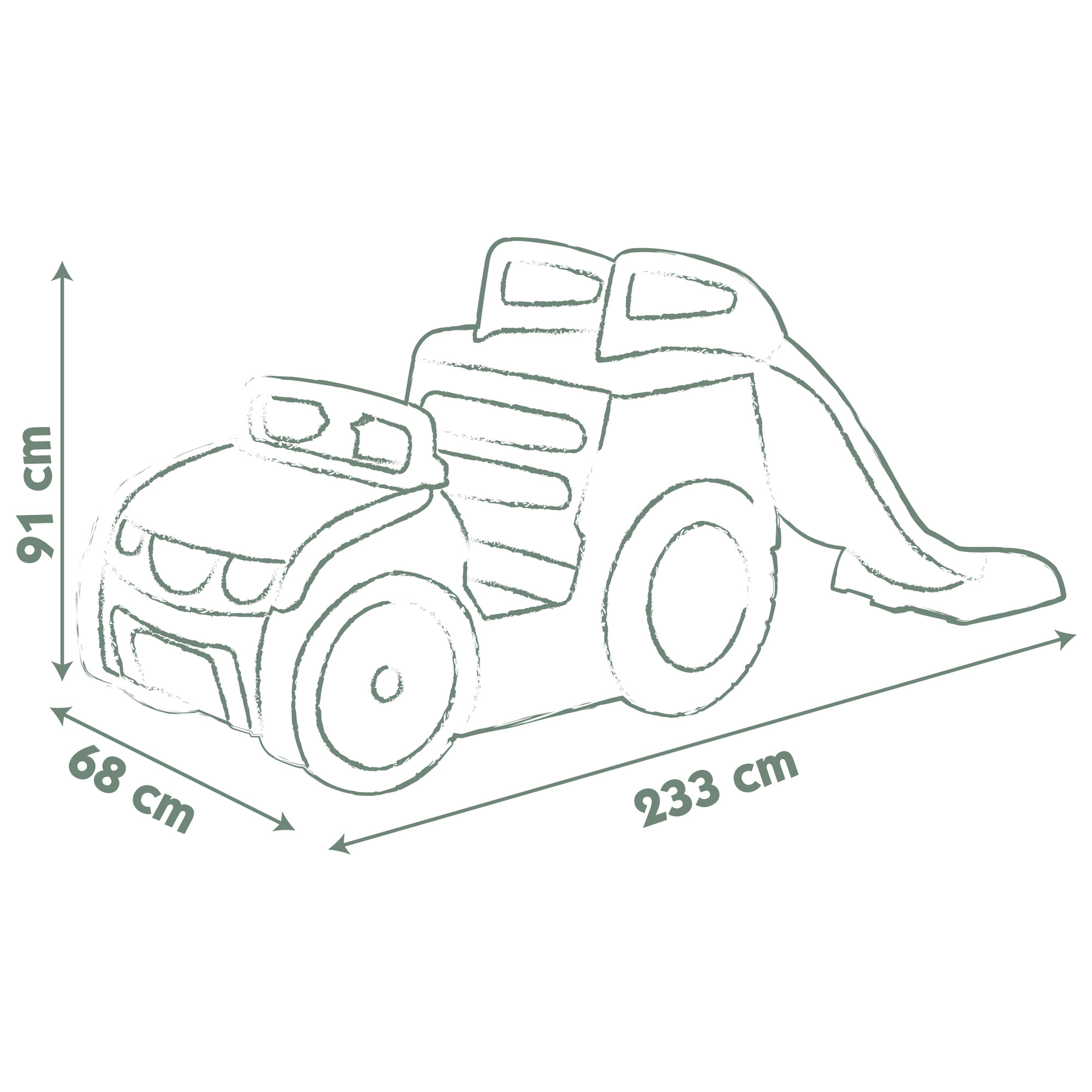 Ez a mászóka és csúszda egy vidám, autó formájú kültéri játékelem, amelyet kifejezetten óvodáskorú gyermekek igényeire terveztek. A játék izgalmasan ötvözi a mászókát, a csúszdát és a homokozót, így változatos mozgásos és szerepjátékos élményeket kínál egyetlen eszközben – ösztönözve a mozgást, a képzelőerőt és a közös játék örömét. Mérete: 233x68x91 cm Anyaga: UV-álló, strapabíró, 78%-ban újrahasznosított műanyag Funkciók: - Beülhető vezetőfülke működő dudával - Átbújható hátsó rész - Létrán megközelíthető csúszda - Motorháztető alatti homokozó Maximális terhelhetősége: 50 kg 18 hónapos korú gyermekek használatára CE minősítéssel ellátva!