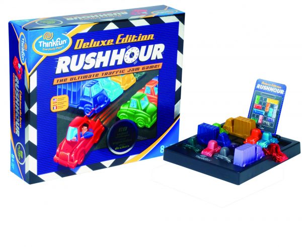 A csúcsforgalomban csak egy dolog jár az eszünkben: hogy végre sikerüljön kiszabadulni a dudáló autók tömegéből. A Rush Hour logikai játékban is pontosan ez a cél, de ellentétben a valósággal itt csak az eszünkre és a térlátásunkra van szükség a sikerhez. A játék rafinált feladványaiban a játékos megpróbálja úgy tologatni a dugóban ragadt autókat, hogy végül sajátjával zöld utat kapva sikerüljön kijutnia a dudáló kocsik gyűrűjéből. A Rush Hour Deluxe Edition a játék rajongóinak készült, hiszen nem csak 60 vadonatúj feladványt tartalmaz, hanem a készítők a játékelemeket is újratervezték, így egy sokkal elegánsabb játéktér fölé görnyedve törhetjük a fejünket. Ezúttal a feladványok 5 különböző nehézségi fokozatra lettek felosztva, hogy a kezdőktől a legprofibbakig mindenki megtalálja magának azt a szintet, ami kihívást jelent számára, de nem tűnik lehetetlennek a Rush Hour csúcsforgalmi helyzetének megoldása.